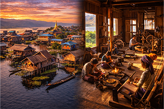 Drive to Inle Lake. Cruise on the lake, visit floating gardens, stilt villages, local workshops, and pagodas.