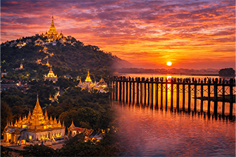 Drive or fly to Mandalay. Visit Mandalay Hill, U Bein Bridge at sunset, and local markets.